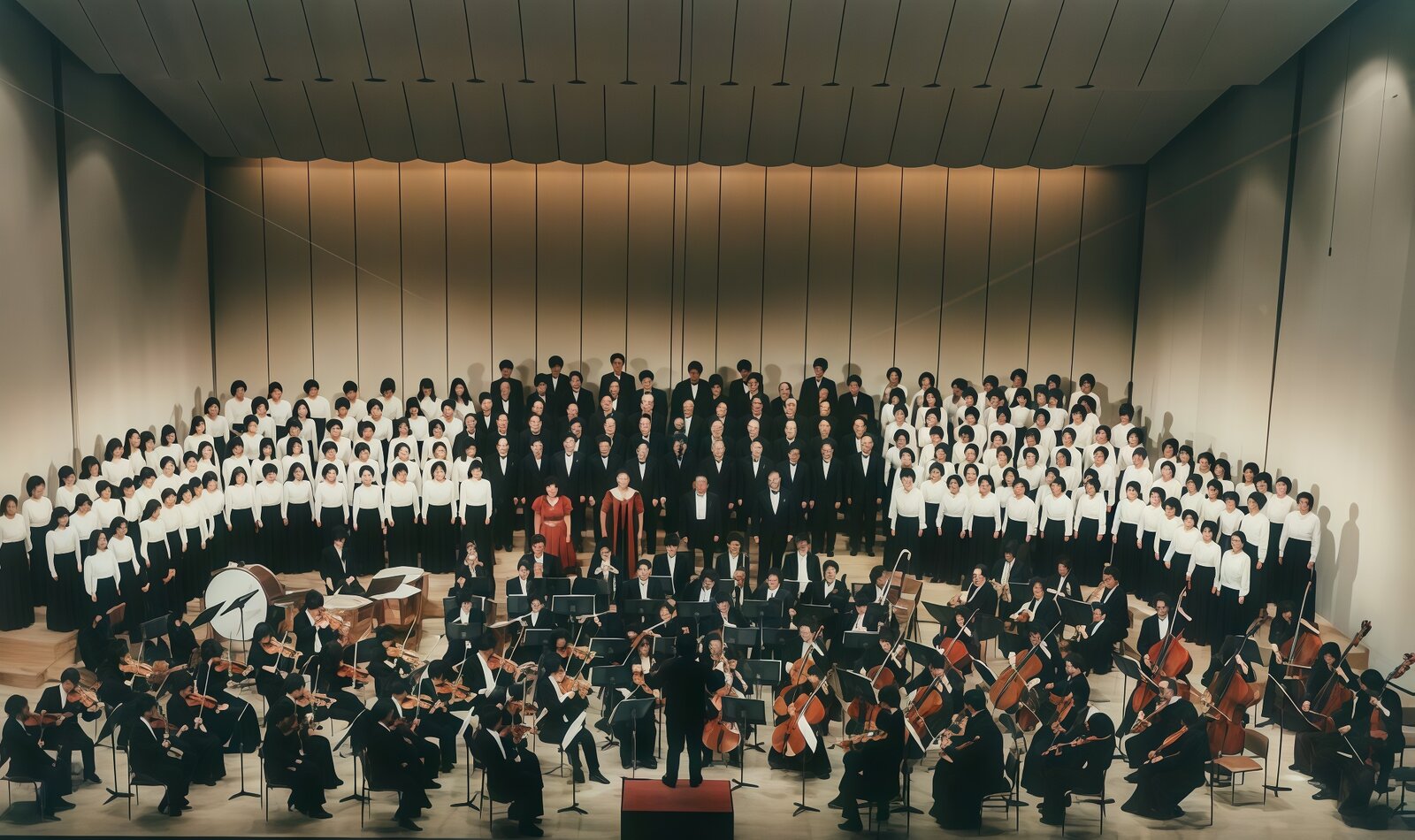 Overcoming these difficulties, the orchestra finally held its First Concert at the Dai-ichi Seimei Hall. The concert was conducted by Mr. Kiyomasa Nagase. The program featured Beethoven’s Coriolan Overture, Tchaikovsky’s Swan Lake, and Dvořák’s Symphony No. 8.
